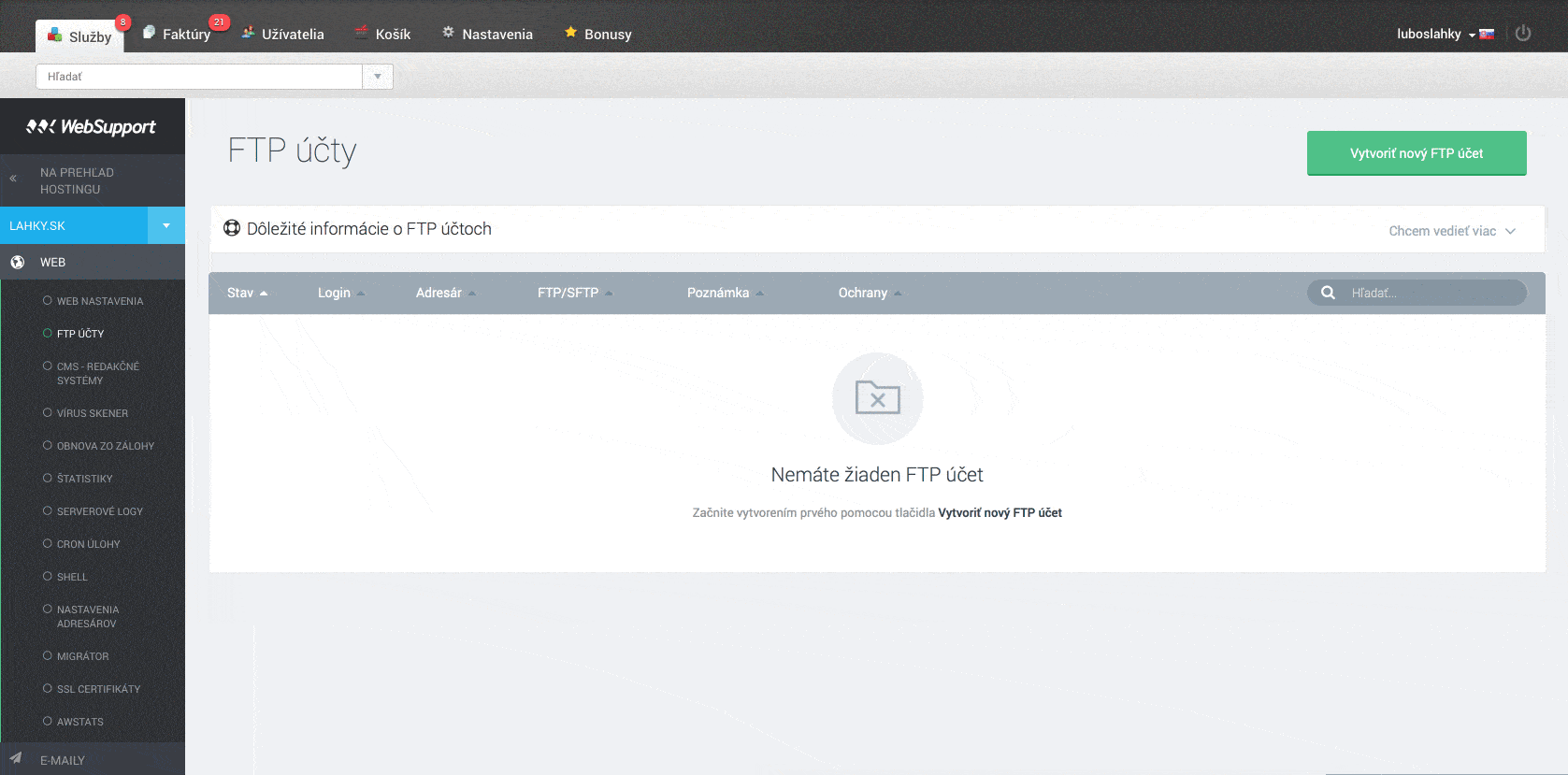 „User admin“ má na starosti fakturáciu, expiráciu, správu používateľov, atď. Je postavený na Yii frameworku a za jeho kód zodpovedá celý Devel Team. To, čo familiárne nazývame „Stanov admin“, sa staralo o nastavenia FTP, e-mail-ov, DNS, databáz, PHP a všetkého okolo technickej časti hostingov. Kód tejto časti sa s nami ťahal od počiatku (WebSupport) sveta, no stál a padal so svojím autorom. Ak sme chceli ďalej WebAdmin rozvíjať a poskytovať produkt vysokej kvality, museli sme sa ho zbaviť (Stanovho admina, nie Stana).