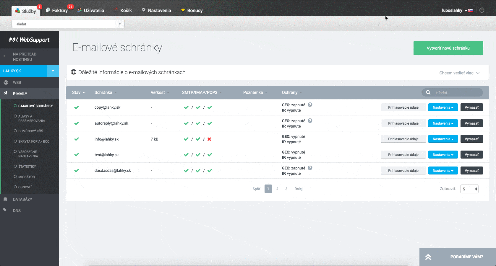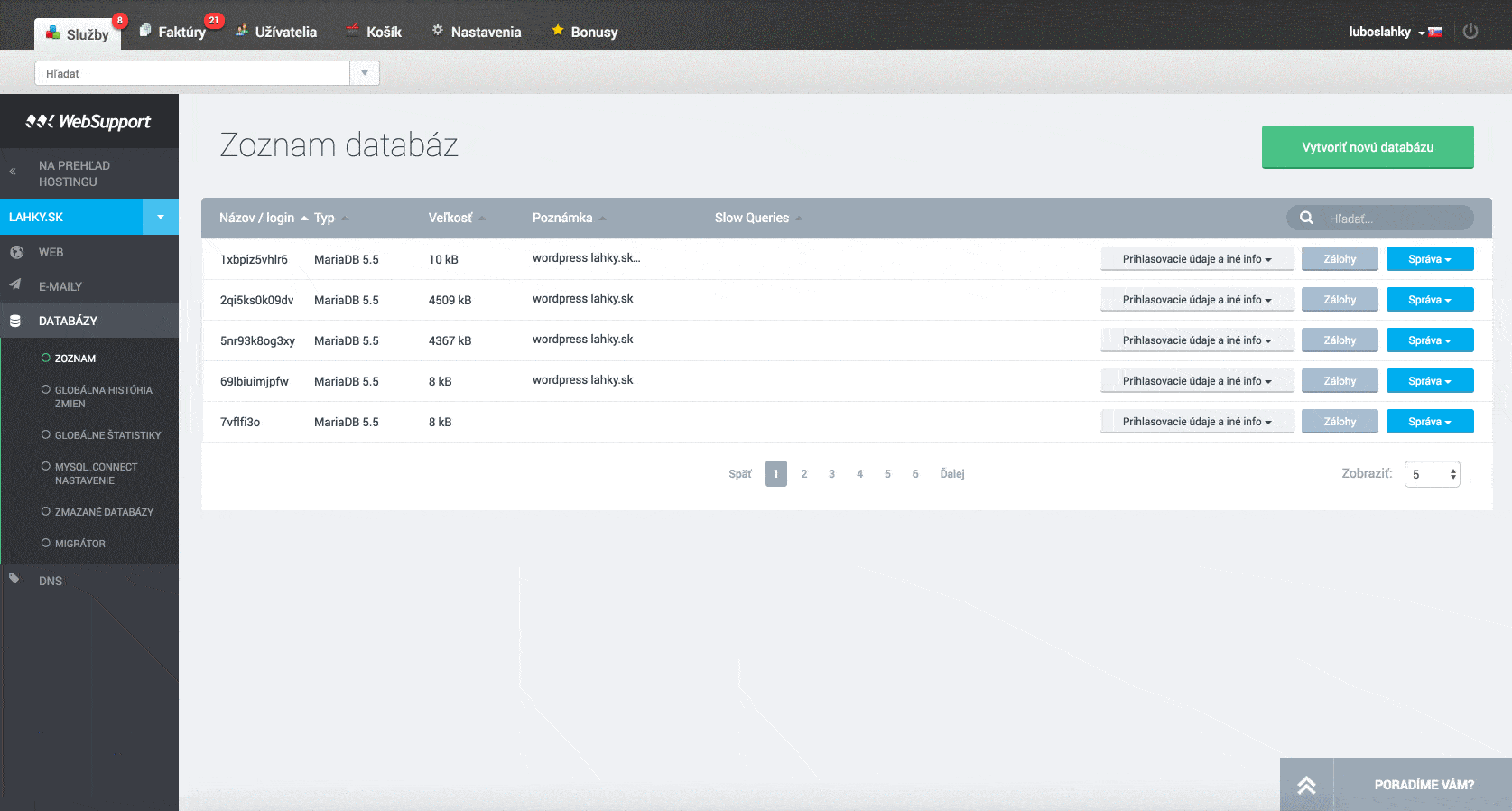 Od jesene 2015 sme postupne nasadzovali 4 hlavné časti nového manažmentu služieb: DNS, databázy, web a e-maily. Dnes sme radi, že všetci naši zákazníci už využívajú nové rozhranie a my zbierame prvé ovocie našej práce. Menej dotazov na helpdesk, super rýchle pridanie podpory Let’s Encrypt, nové vychytávky. Veď pozrite sa sami na pár príkladov, rozdelených podľa typu: