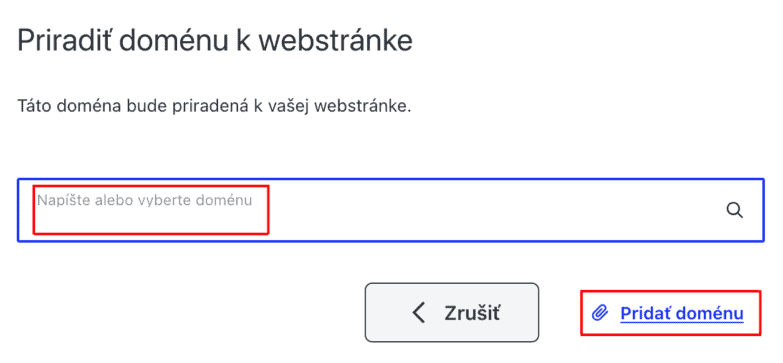 5. Po odpojení domény sa zobrazí možnosť priradiť novú. Kliknite na tlačidlo Priradiť doménu v prehľade webstránky