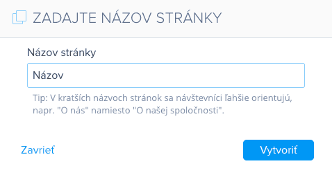 4. Zadajte Názov stránky a kliknite na Vytvoriť.