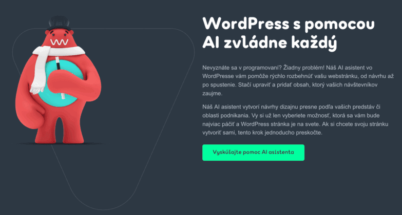 1B) Na stránke nájdite sekciu s názvom WordPress s pomocou AI zvládne každý, kde kliknite na zelené tlačidlo Vyskúšajte pomoc AI asistenta