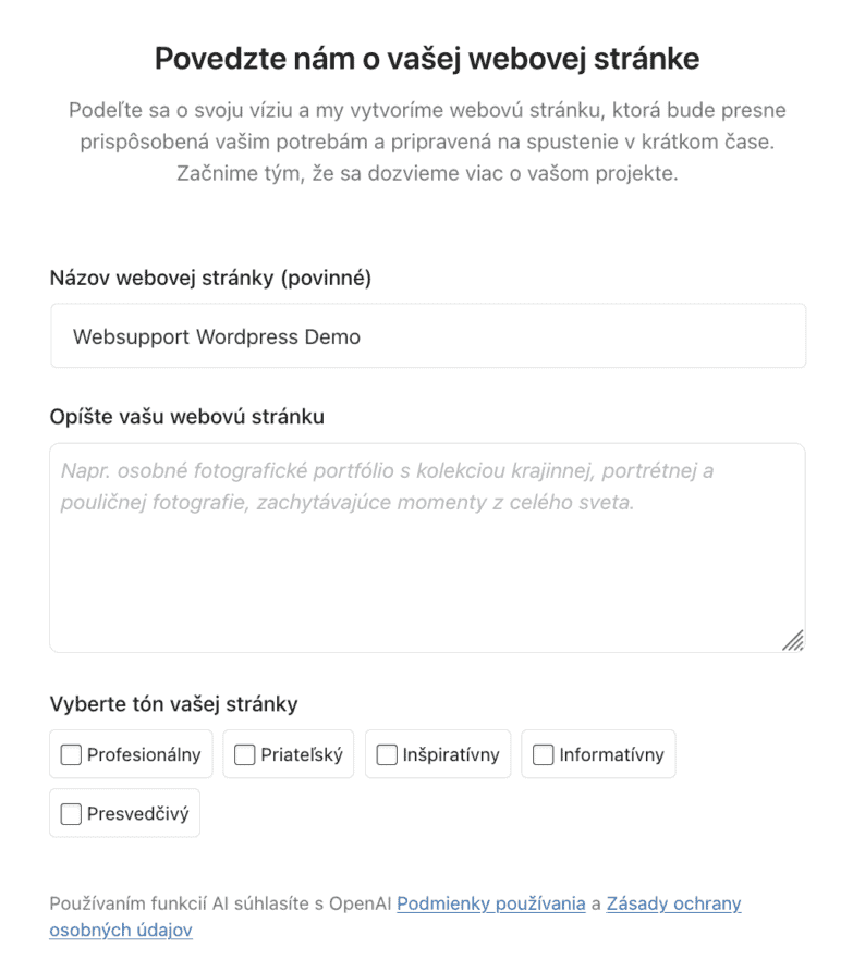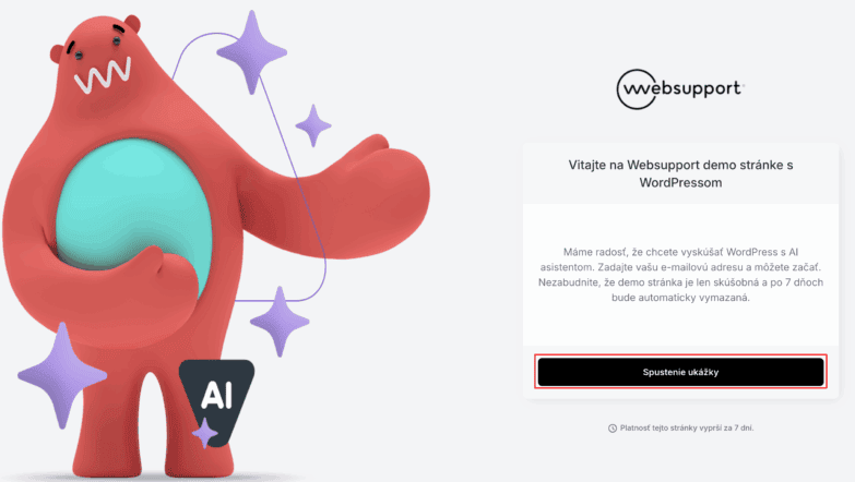 1. Vyskúšajte si demo prostredie WP s AI asistentom