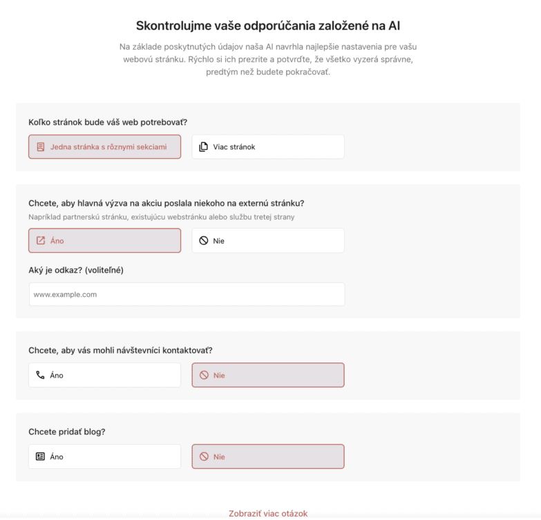 Následne v rámci inštalácie budete mať možnosť si špecifikovať požiadavku pri tvorbe webovej stránky, vždy na každej stránke kliknite na tlačidlo Ďalej.