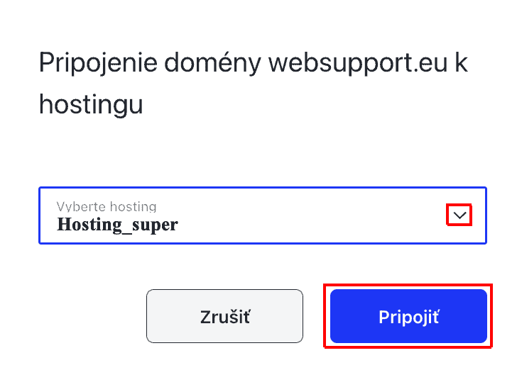 Zvoľte si cieľový hosting ku ktorému doménu pripojíte a kliknite na tlačidlo Pripojiť