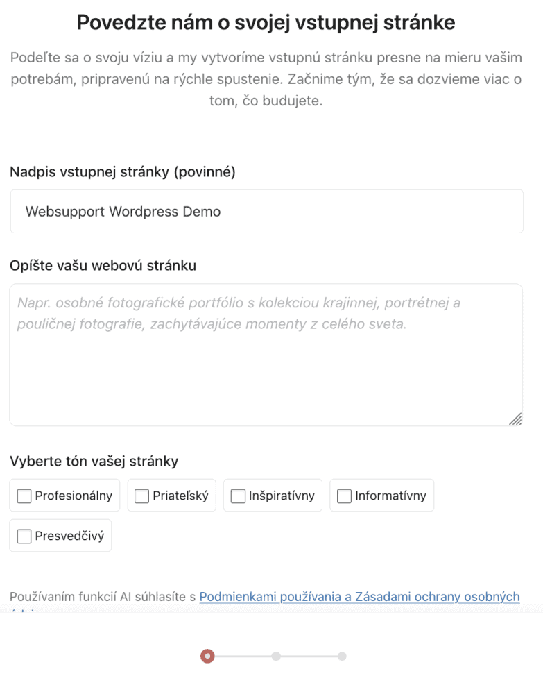 1. Vyskúšajte si WP s AI asistentom (rýchla tvorba dema)