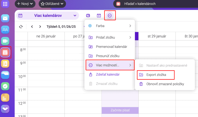 2. V ľavom menu kliknite na tlačidlo Kalendár