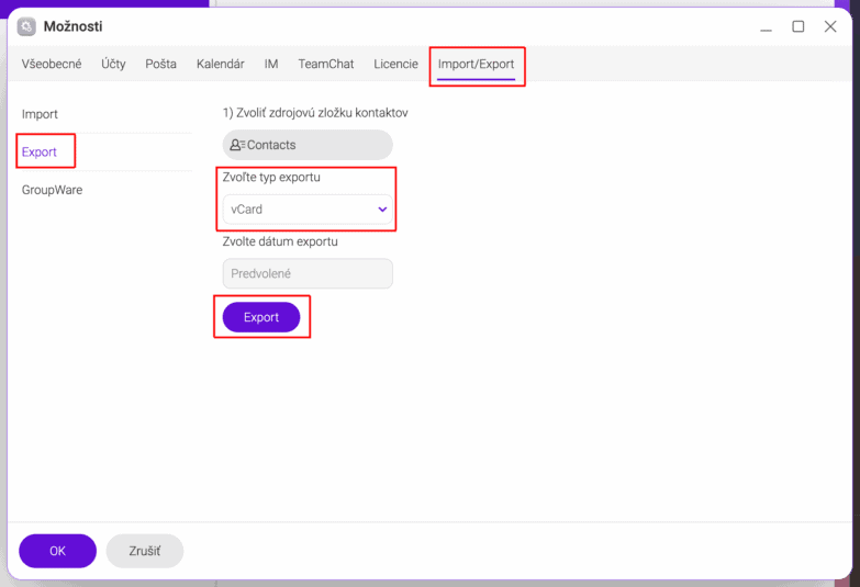 3. V pravej hornej lište kliknite na tlačidlo Exportovať