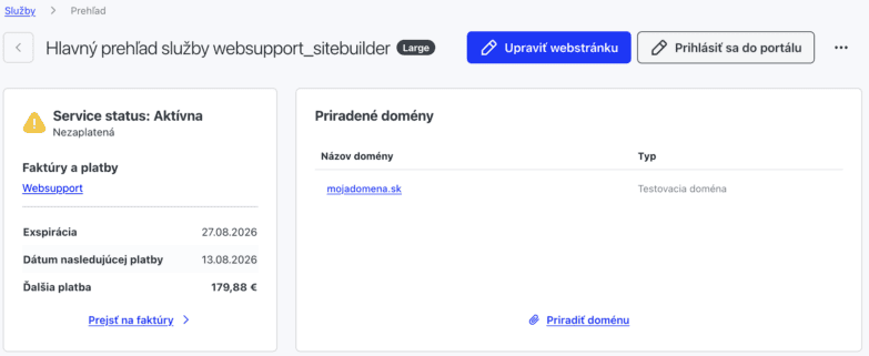 Tým sa dostanete do prehľadu služieb, kde môžete kliknúť na Upraviť webstránku v pravom hornom rohu stránky.
