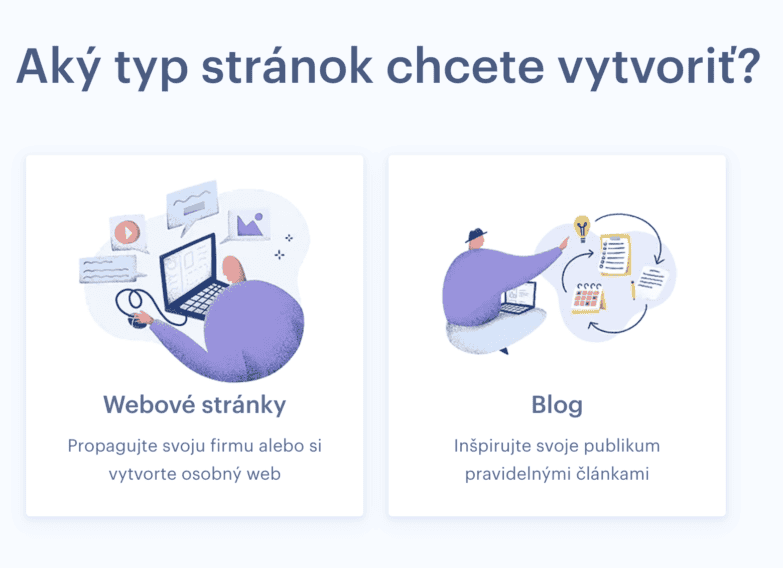 Vybrať si môžete z možnosti Webové stránky a Blog.