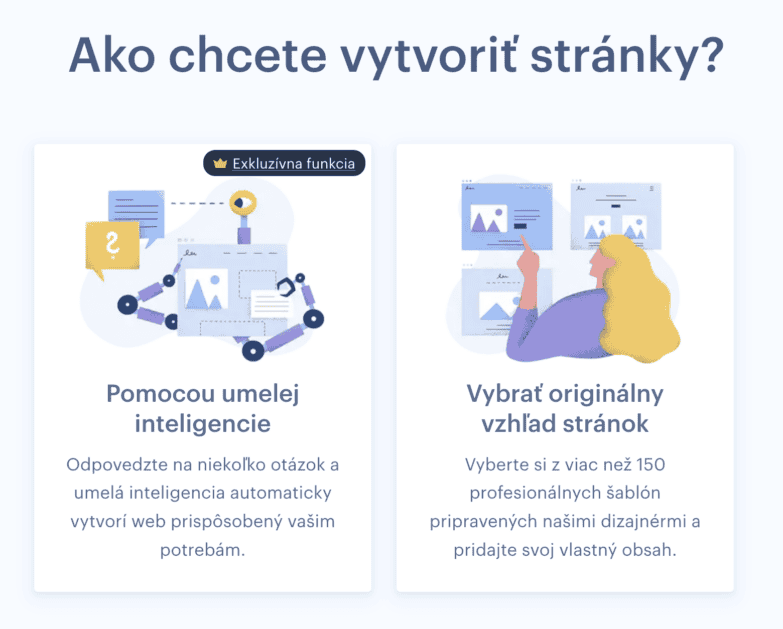 4. Máte dve možnosti tvorby webovej stránky.