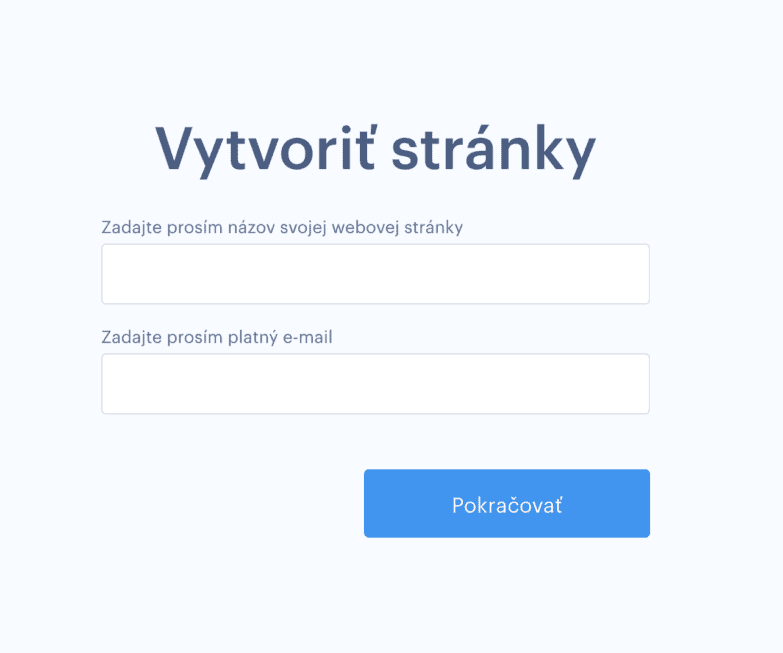1. Najskôr vyplňte názov vašej stránky a platnú e-mailovú adresu.