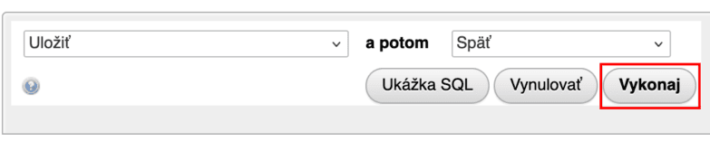 7) Pre uloženie hesla kliknite na tlačidlo “Vykonaj” na spodnej strane stránky. Budete presmerovaní späť do prehľadu tabuľky v databáze